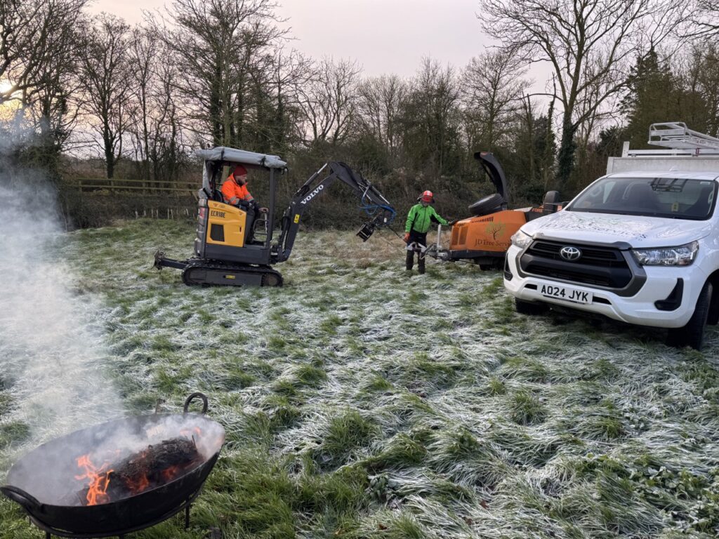 January 7th and 8th and I’m up on the land to let in our tree and landscaping person and hang around for a while in the cold. We have never attended to the long border on the north side of the land. There are lots of brambles at one end and over the last 6 months or so at least two of the poplars have died and one has collapsed very close to the existing barn. Another is now at 45 degrees, so we need to act in advance – probably well in advance – of any building work starting.
