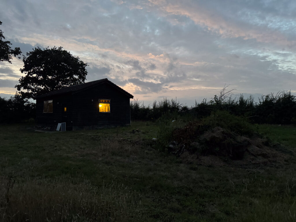 I don’t remember when or how exactly these desires developed, but I can say that on Wednesday 22nd July 2020 a piece of land in mid-Suffolk of 0.45 of an acre went under the hammer at auction and was won thanks to H’s confident bidding, even though it was our first taste of an auction. Some days later, in early August, we drove up to Norwich and collected the keys, one to the gate of the land and the other to the padlock on the door of the building nestled in the corner of this pocket-shaped plot. Other agricultural buildings had been demolished by the previous owner.